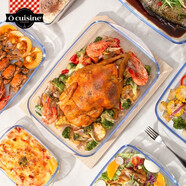 菲內(nèi)克斯 鋼化玻璃盤長方形家用烤盤菜碟面包烘焙盤烤箱蒸魚盤微波爐適用 1.0L烤盤